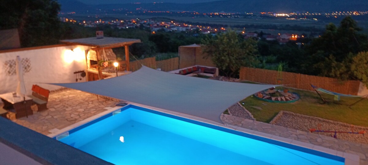 Mediterranean house dely offers you a place for rest and enjoyment 5 km from Mostar in nature, ideal for families who want to spend time together in a natural atmosphere, refresh themselves in their own pool and enjoy the beautiful view of the vineyard and the distance. Ideal for families, not intended for parties, celebrations and similar things