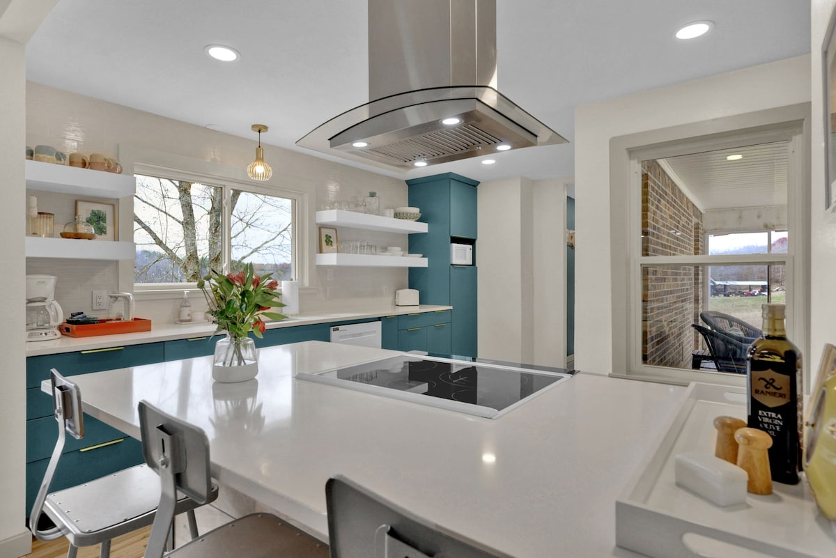 Perched on the side of a cliff with spectacular views of the mountains of the Cumberland Plateau and Sequatchie Valley, Cliffside is a unique contemporary Scandinavian-style property. Start your day with espresso or coffee from our Nespresso machine in front of the large picture windows. Unwind with a soak in the hot tub, sunset on the deck, a chat around the firepit, or kayaking on the nearby lake. Located on Dayton Mountain near many hiking trails, it is only a 20-minute drive to Dayton.
