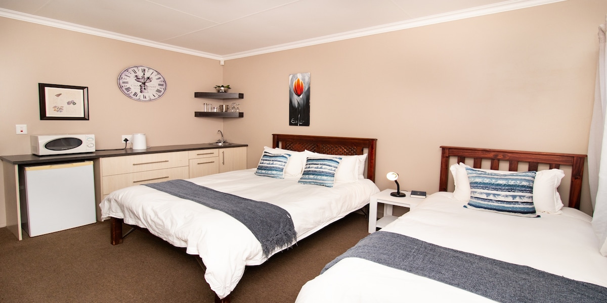 Twelve on C é uma casa de campo que aceita animais de estimação e oferece uma estadia confortável em um dos bairros mais seguros de Bloemfontein. Nossa unidade de 2 quartos totalmente mobiliada é perfeita para famílias ou pequenos grupos de amigos que procuram um retiro tranquilo e privado e oferece todas as comodidades de que você precisa para uma estadia confortável. Cada quarto é uma mistura de conforto moderno e charme local, garantindo que você tenha uma estadia inesquecível conosco. Não vemos a hora de hospedar você no Twelve on C!