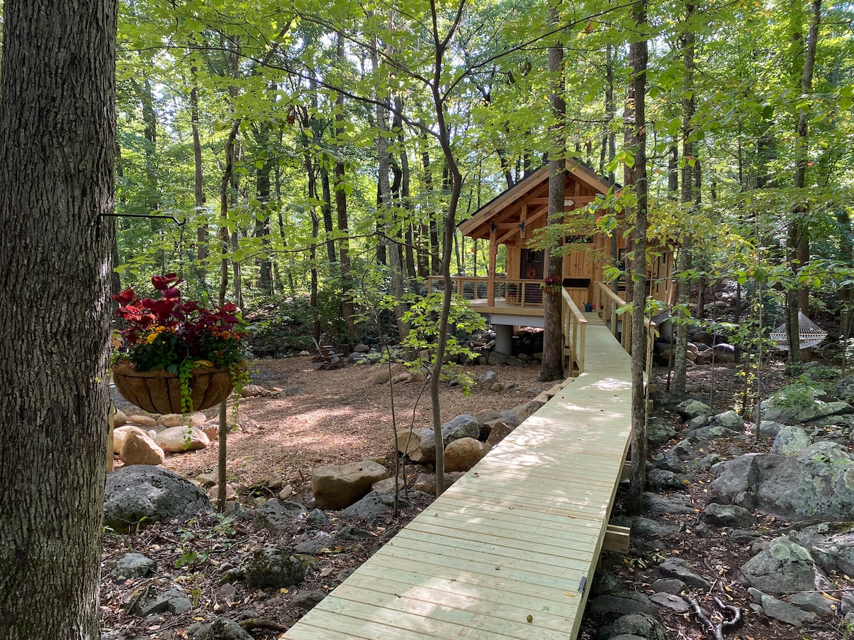 Incrível cabana artesanal localizada no centro da "Roanoke Triple Crown" (McAfee 's Knob, tinker cliffs e dragons tooth trails) a poucos minutos de cada trilha. A cabana está escondida de tudo. Nenhuma outra casa pode ser vista da cabana. A cabana tem vista para um belo lago com uma pequena cachoeira em cascata. A cabana foi construída de forma sustentável com árvores dos 20 acres em que se encontra. O início da trilha McAfee 's Knob fica a 10 minutos de distância, o início da trilha Andy Layne para os penhascos Tinker fica a 9 minutos de distância.