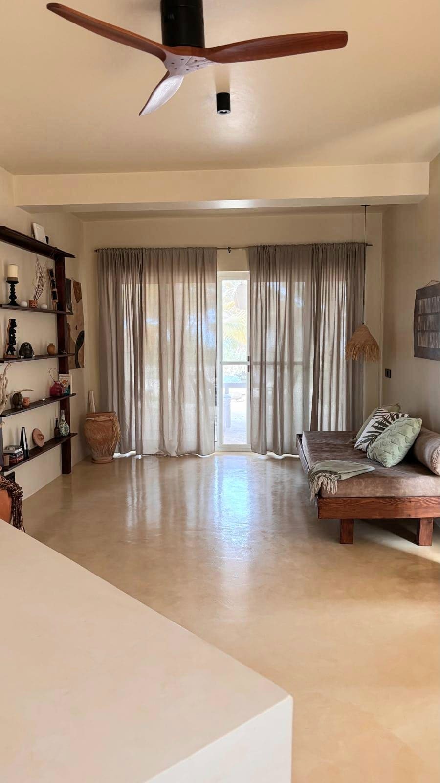 Apartamento dos Sonhos na Praia do Estoril - Boavista, Cabo Verde Acorde com o som do oceano e vistas deslumbrantes para o mar neste charmoso apartamento duplex, localizado bem em frente à bela praia do Estoril - a apenas 5 minutos a pé do coração de Sal Rei. Desfrute de um espaçoso terraço privativo com vistas deslumbrantes, perfeito para relaxar ou jantar sob as estrelas. Um retiro tranquilo e ensolarado em Cabo Verde, onde o conforto encontra o paraíso.