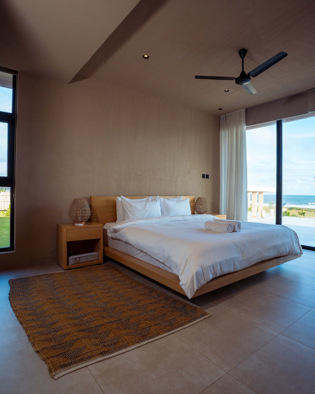 This luxury 2-bedroom, 2-bathroom A-frame beachfront villa in Ekumfi-Arkra offers a serene oceanfront retreat designed for comfort, privacy, and modern living. With striking floor-to-ceiling glass windows, the villa allows guests to wake up to uninterrupted, full ocean views from every bedroom, creating a constant connection to the sea. ensuring privacy and a peaceful atmosphere away from busy tourist crowds. Designed to accommodate couples, families, small groups, and content creators.