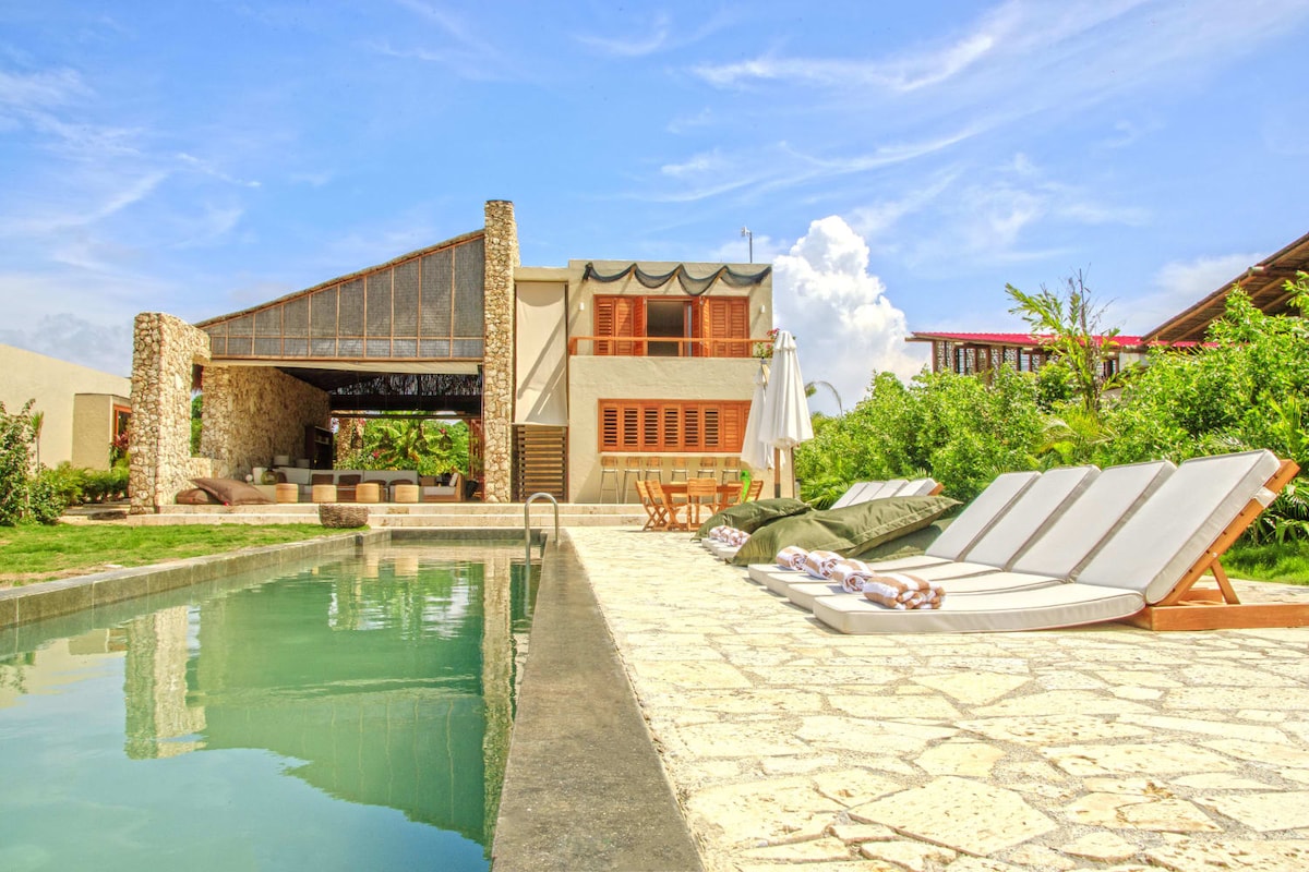 Nossa exclusiva casa na ilha Tierra Bomba com piscina privativa fica a apenas 5 minutos de barco de Cartagena. Ao chegar, o barco vai deixá-lo diretamente na praia (não há doca), mas nossa equipe amigável estará esperando para ajudá-lo com o check-in e fornecer-lhe uma recepção calorosa e confortável desde o primeiro momento.