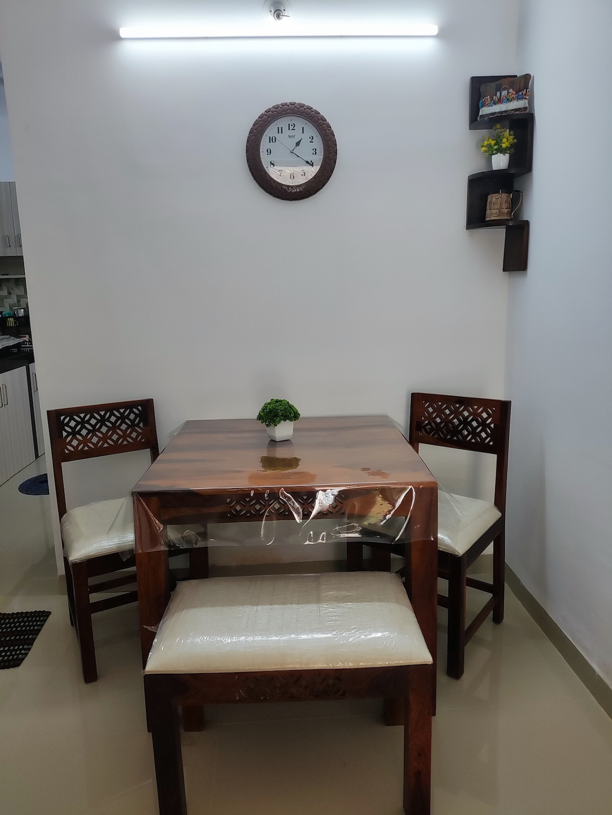 Welcome to an elegant, thoughtfully designed 1BHK that blends luxury, comfort, and style. Featuring warm wooden interiors, calming lighting, a modern living area, a fully equipped kitchen, and a serene bedroom, this home offers the perfect escape. Ideal for business travelers and couples, enjoy fast Wi-Fi, premium furnishings, and a peaceful, beautifully curated space made for relaxation and memorable stays. Perfect for guests seeking comfort, convenience, and a premium experience