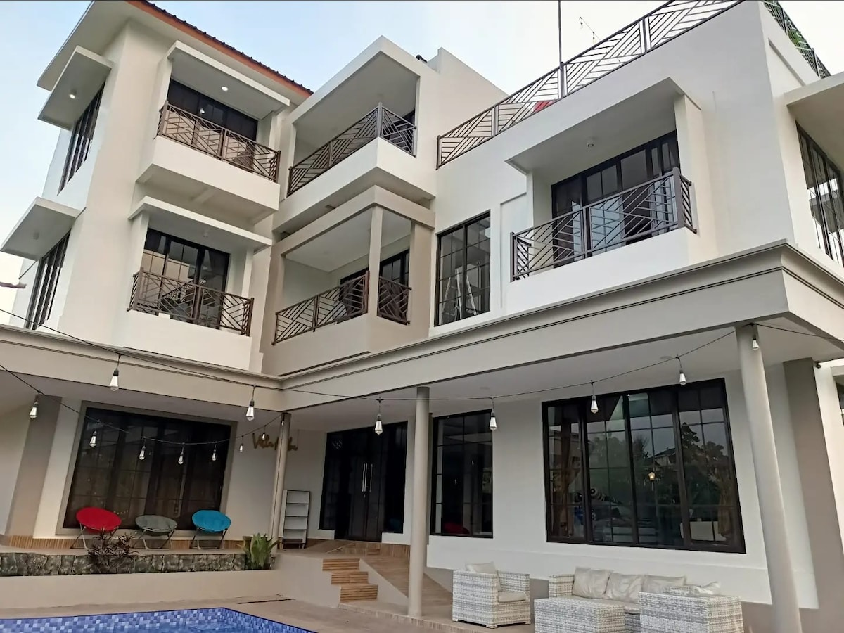 Bem-vindo à Villa La Lady, uma elegante vila privada criada em 2024 e projetada para oferecer uma estadia moderna, confortável e memorável na área tranquila de Ciomas, Bogor. Com 5 quartos espaçosos e 6 banheiros limpos e bem equipados, a vila oferece muito espaço para todos. A propriedade foi projetada para acomodar uma capacidade ideal de 15 hóspedes e pode acomodar confortavelmente até 20 pessoas, tornando-a a escolha perfeita para celebrações íntimas, escapadas de fim de semana ou retiros familiares.