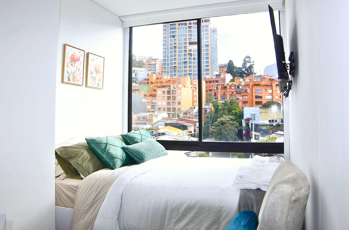 Acorde com uma vista panorâmica da icônica Zona G de Bogotá. Comece o dia com uma deliciosa xícara de café colombiano, nosso deleite! - Desfrute de um treino no ginásio do edifício, depois explore os cafés e restaurantes mais famosos da cidade, todos a uma curta distância a pé. À tarde, relaxe na sauna ou aproveite o pôr do sol da piscina aquecida no terraço. À medida que a noite cai, dirija-se a poucos minutos de distância da Zona T para desfrutar da melhor vida noturna da cidade. Localizado no edifício residencial mais seguro de Bogotá, com segurança 24 horas por dia, 7 dias por semana.