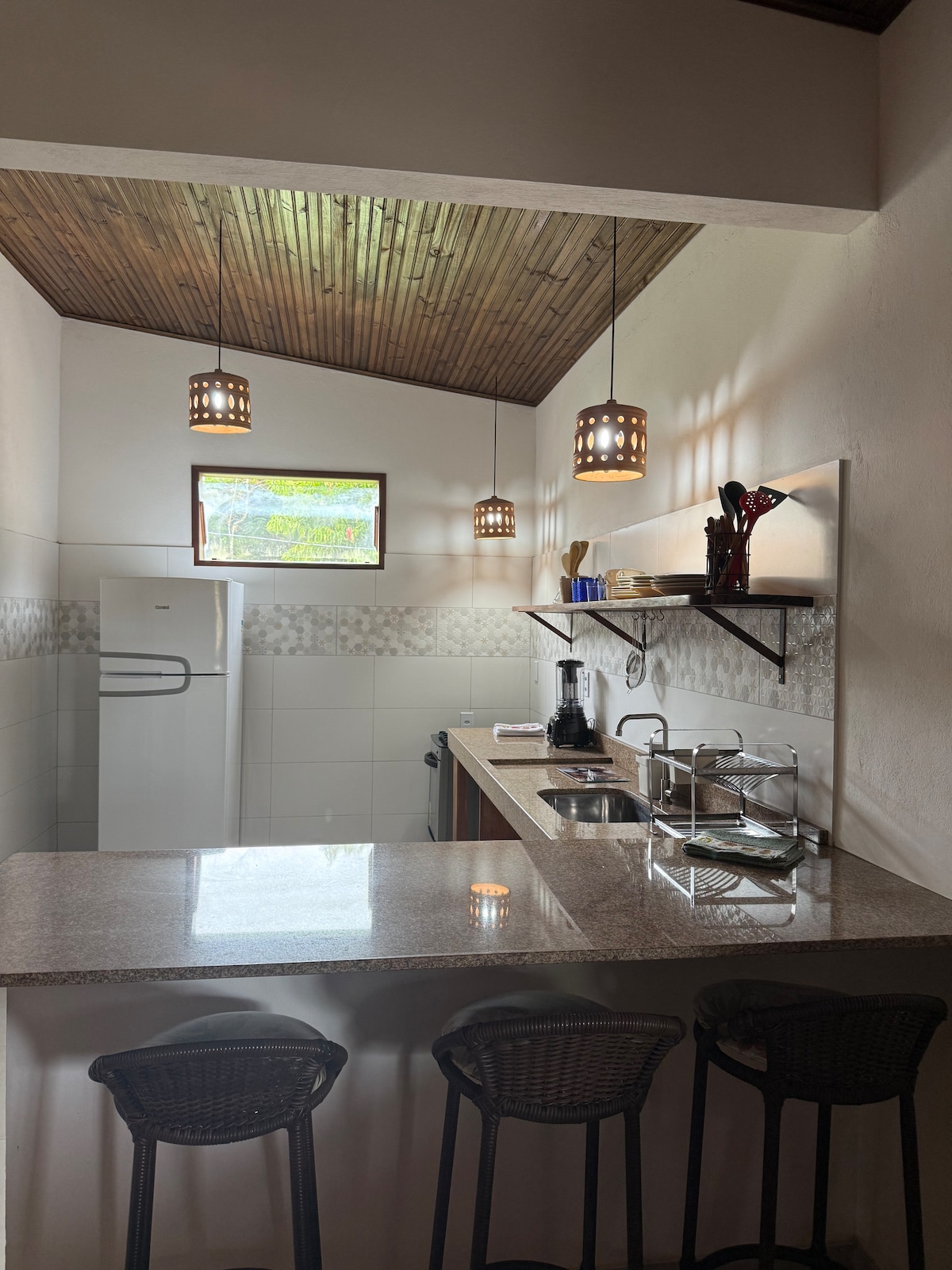 Este charmoso Home Suíte de 36 m² possui estilo próprio e paredes em reboco greco-baiano, trazendo uma decoração rústica e acolhedora. O ambiente conta com cama de casal e uma cama auxiliar (solteiro), proporcionando conforto e praticidade. Dispõe ainda de cozinha completa e equipada, banheiro com chuveiro elétrico e um espaço tipo closet para roupas e objetos pessoais. Um refúgio cheio de charme, ideal para quem busca tranquilidade, conforto e uma experiência única em Boipeba.