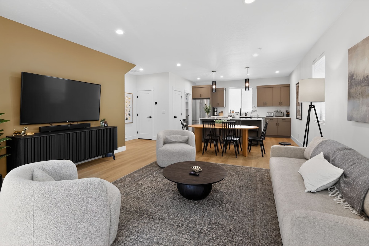 Esta bela acomodação construída sob medida foi concluída no outono de 2021. Em 5 quartos e 3,5 banheiros, esta acomodação é uma obra-prima moderna que seu grupo vai adorar. A peça de destaque é uma escada de mármore preto na frente das janelas do chão ao teto para uma incrível luz natural. A cozinha e a sala de jantar são perfeitas para entretenimento. Com refeições ao ar livre e uma banheira de hidromassagem para 8 pessoas, você e seus hóspedes desfrutarão de uma estadia de luxo descontraído. Não permitimos festas.