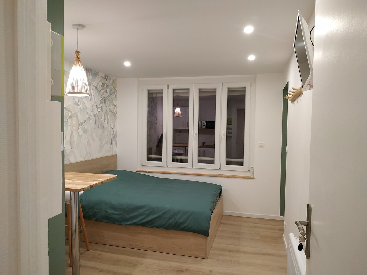 Agradável estúdio pequeno e novo para 1 pessoa, no térreo no lado da rua, você vai apreciar a sua localização perto da estação de trem TGV e da Universidade a apenas 5 minutos a pé. Devido ao seu tamanho, é ideal para 1 pessoa, mas pode ser adequado para 2 pessoas para estadias curtas.