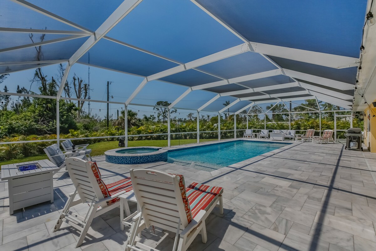 Elegante e elegante, com muito espaço para relaxar e desfrutar de um dos tesouros escondidos mais únicos e especiais de Floridas. Bokeelia em Pine Island! Casa lindamente remodelada tem 3 quartos completos, bem como um quarto bônus com futon duplo no andar de baixo na piscina lanai. Muito espaço ao ar livre ao redor da piscina, no novo cais do barco, bem como uma área de café da manhã ao ar livre de nível superior que pode ser totalmente aberta para ambos os quartos principais através das portas de vidro deslizantes de grandes dimensões para cada quarto. Também inclui um elevador!