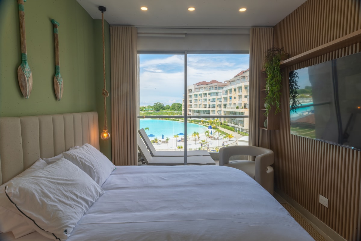Exclusivo apartamento de 1 habitacion en Baia Kristal kabo con espectacular vista a la laguna cristalina. Cuenta con sala con sofá cama, cocina totalmente equipada, 1 baño y terraza privada para disfrutar de la brisa cartagenera. Vive una experiencia única con acceso a playas privadas de arena blanca, piscinas, jacuzzi, gimnasio y club house. Podrás navegar en kayak o paddle board. Ubicado a solo 15 minutos del aeropuerto, con restaurantes y supermercados a pocos pasos.