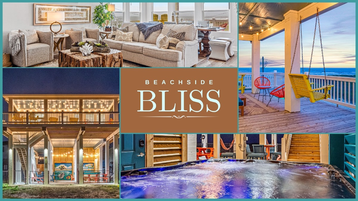 BEACHSIDE BLISS is a luxurious and stunning cottage located just a few steps from the beach, offering breathtaking panoramic views of the ocean. This luxury home is great for family gatherings, where you can enjoy the fresh ocean breeze and the soothing sound of waves. The balcony provides spectacular sunrise and sunset views and is ideal for viewing Galveston lights at night. Come spend some time here @ BEACHSIDE BLISS!