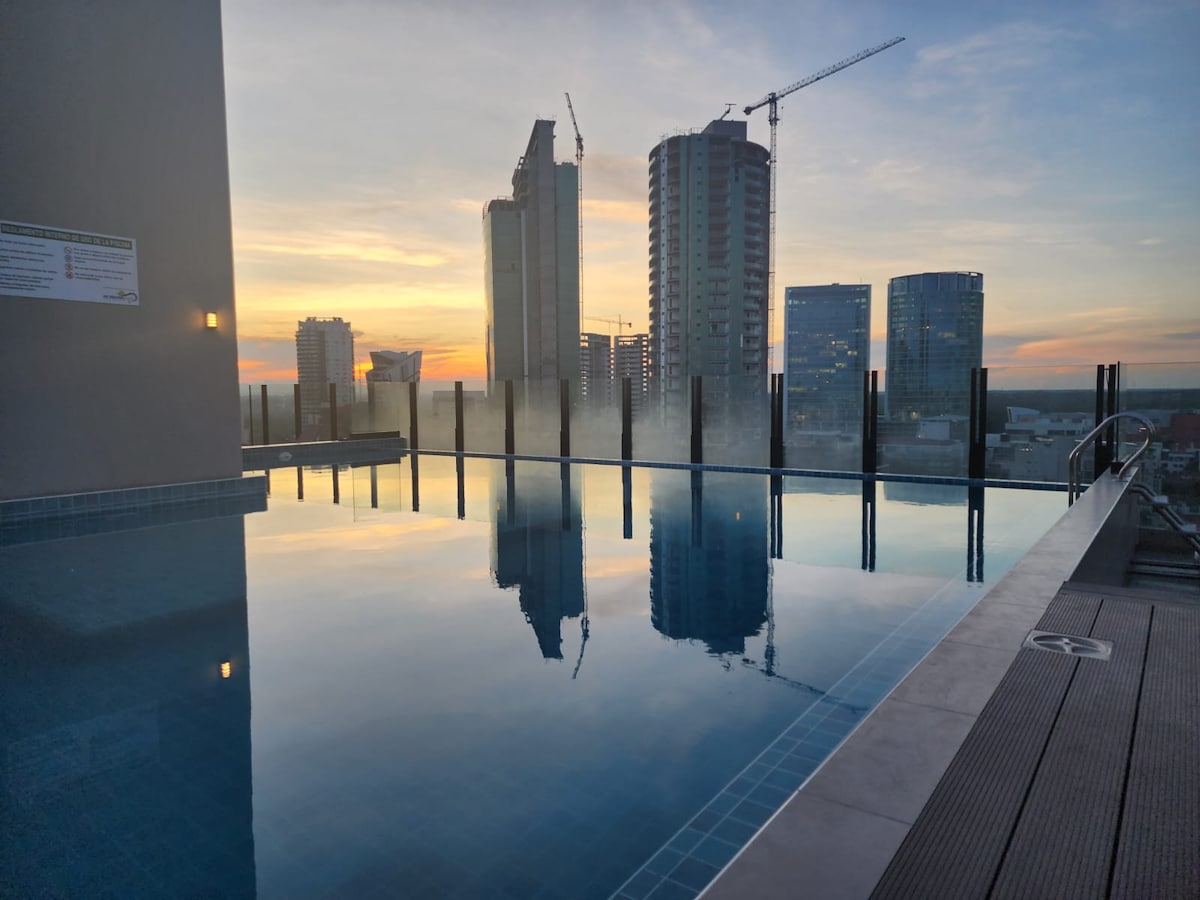 Este estúdio de luxo está localizado no bairro Equipetrol, Sky Elite Building, a uma quadra do Hotel Los Tajibos. Representa a combinação perfeita de exclusividade e comodidades de primeira classe na cidade de Santa Cruz de la Sierra, cercada por restaurantes, lojas, cafés, farmácias e supermercados. O edifício oferece mais de 3.000 metros quadrados de áreas sociais, incluindo uma academia moderna, piscina extensa, churrasqueira, cowork, cinema privado, sauna e banheira de hidromassagem.