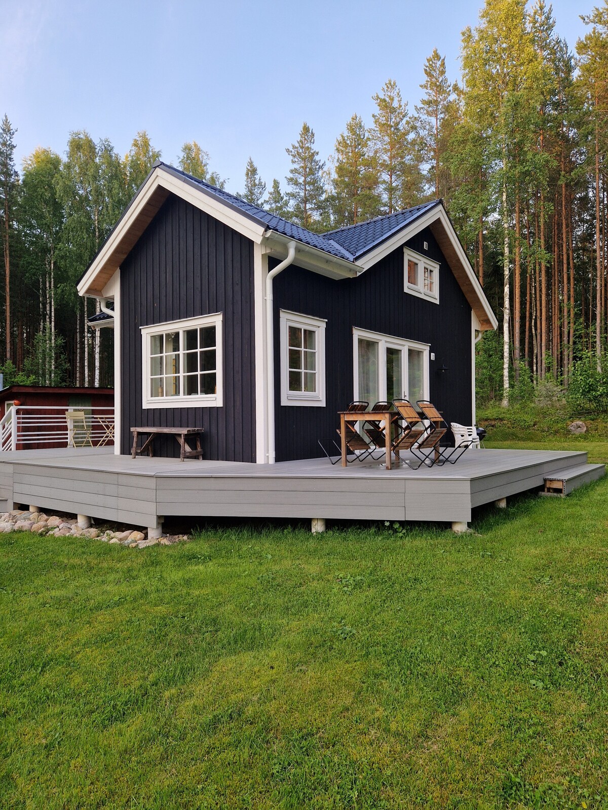 Hela gruppen kommer att ha enkel tillgång till allt från detta centralt belägna boende vid sjön Varpen. Här kan man bo sommar som vinter. Här finns centrum och mataffär nära. Bussförbindelse finns vid Ica Maxi. För kännedom så ligger detta boende alldeles bredvid vårat hus och närliggande grannar finns.