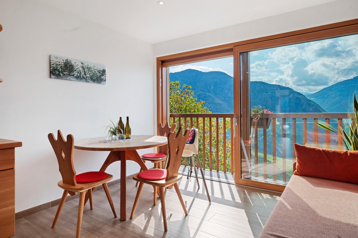 Localizado a 3-4 km do centro da cidade de Bolzano. 680 m. a.s.l. Acessível APENAS de carro, nossa localização oferece vistas incomparáveis e acesso a atividades ao ar livre. Fuja do caos da vida na cidade e recarregue sua alma com uma estadia em nosso aconchegante apartamento na montanha. Acorde com vistas deslumbrantes dos Dolomitas e o som dos pássaros cantando. Desfrute de caminhadas, ciclismo e explore os monumentos naturais da UNESCO. Saboreie vinho na varanda sob um céu cheio de estrelas. O preço inclui o Ritten Card (!)