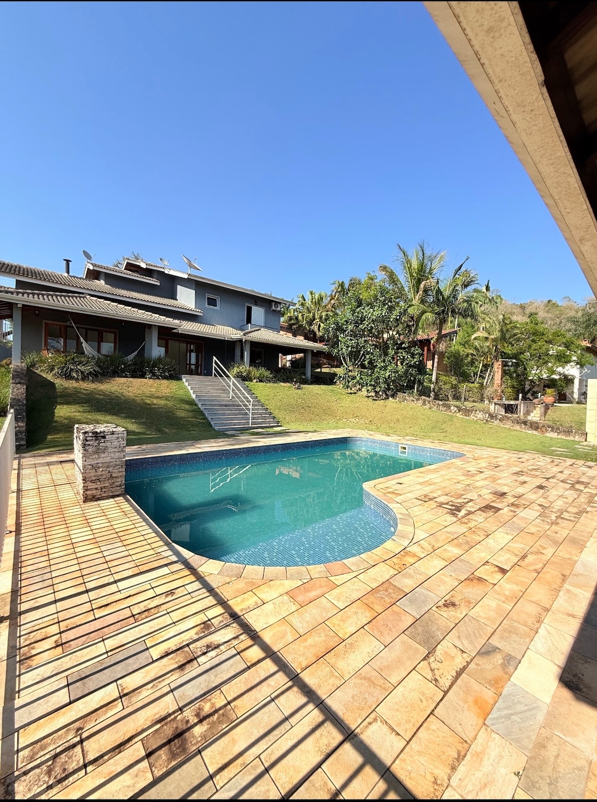 Linda casa em meio ao vale, com muito conforto e privacidade. Planta ampla com decoração rústica e cheia de personalidade. Perfeito para relaxar com a família e amigos. Ambiente com churrasqueira, forno de pizza, piscina, sauna, chuveiro natural, lago e deque de madeira. Local cercado por natureza exuberante. Com 4 suítes, 2 quartos com banheiro compartilhado e lavabo todos os seus convidados vão ficar muito confortáveis.