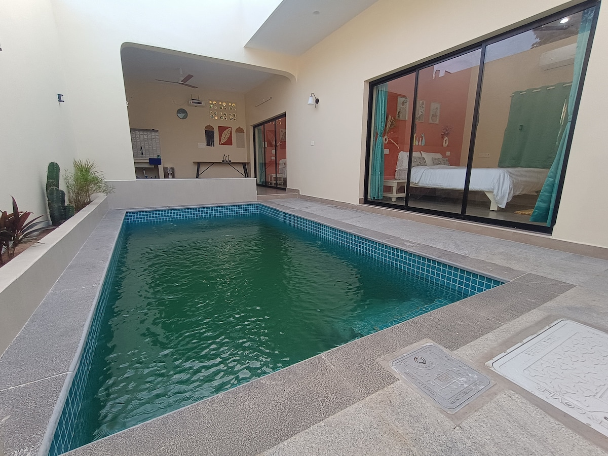 Welcome to our 🏊🏻♀️ 2BHK Indoor Private Pool Villa – your ultimate Pondicherry escape! 🛌 Designed in serene Balinese style 🛖 with earthy tones, tropical vibes 🌴 and modern comforts, it’s the perfect mix of luxury & relaxation. Take a dip in your private pool (accessible 24/7) ⏰, enjoy a long soak in the bathtub 🛁, or sip a cocktail by the water 🥂 — ✨ and truly fall into the holiday state of mind..! 🥳