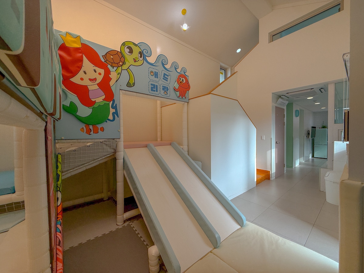 Hello. It is located on a cliff in the center of Seogwipo, so it has a perfect ocean view with permanent views. Our space is a private, small, detached space that is separate from other travelers, so guests can use it without ambient noise. Rooms are divided into bedrooms and living rooms with 20 pyeong, including rooms You can see the sea from the swimming pool, the cafe where you can have breakfast, and the outdoor garden.