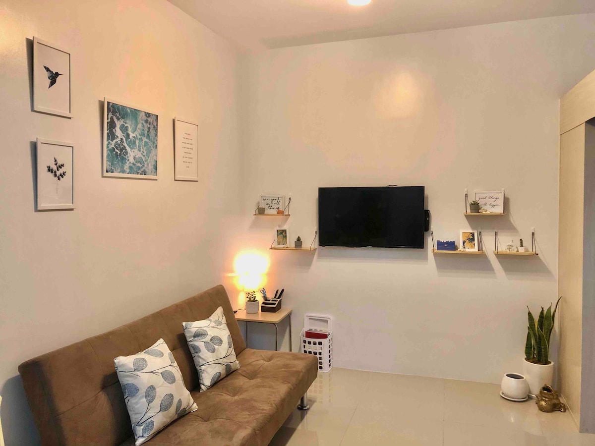 Fuja para esta encantadora unidade de um quarto com tema suculento situada no alto da SM Light Residences Tower 1. Aproveite a comodidade do acesso ao shopping, persianas blackout para um sono repousante e uma vista cativante das comodidades da piscina. Quer você esteja trabalhando ou explorando, você vai desfrutar da Internet de alta velocidade e telefone fixo, Smart TV (pré-carregada com assinaturas Netflix e Disney+) e cozinha, enquanto está a poucos minutos do distrito comercial central. Seu retiro acolhedor espera por você!