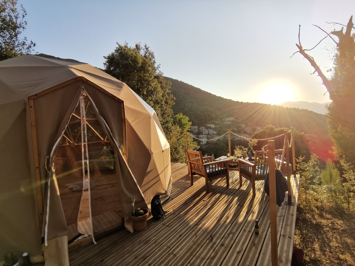 Aninhada entre Balagne e a Alta Córsega, esta cúpula romântica oferece uma vista deslumbrante para a montanha, uma banheira de hidromassagem nórdica privativa e um céu estrelado que você pode admirar da sua cama. Um verdadeiro refúgio de paz onde você pode se reconectar com a natureza, longe das multidões, enquanto desfruta de conforto premium e do toque autêntico de Christophe, o coração e a alma do lugar. No Domaine l'Aghja Vallica, você experimentará uma escapada inesquecível no coração da autêntica Córsega 🌿