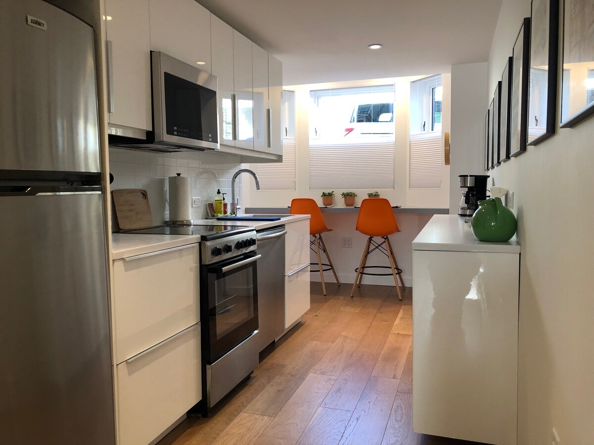 Este lugar único tem um estilo e um charme - um elegante apartamento de 1 quarto com tetos altos, design atencioso, a uma curta distância de Davis Square, Porter Square, Alewife Station (metrô T) e fácil acesso a Harvard, MIT, BU, Tufts, centro de Boston. A cozinha aberta possui eletrodomésticos de tamanho completo, bancadas de granito e tudo o que você precisa. O quarto oferece uma cama queen confortável, lençóis macios e uma paleta de cores calma e relaxante — perfeita para relaxar depois de um dia explorando a cidade.