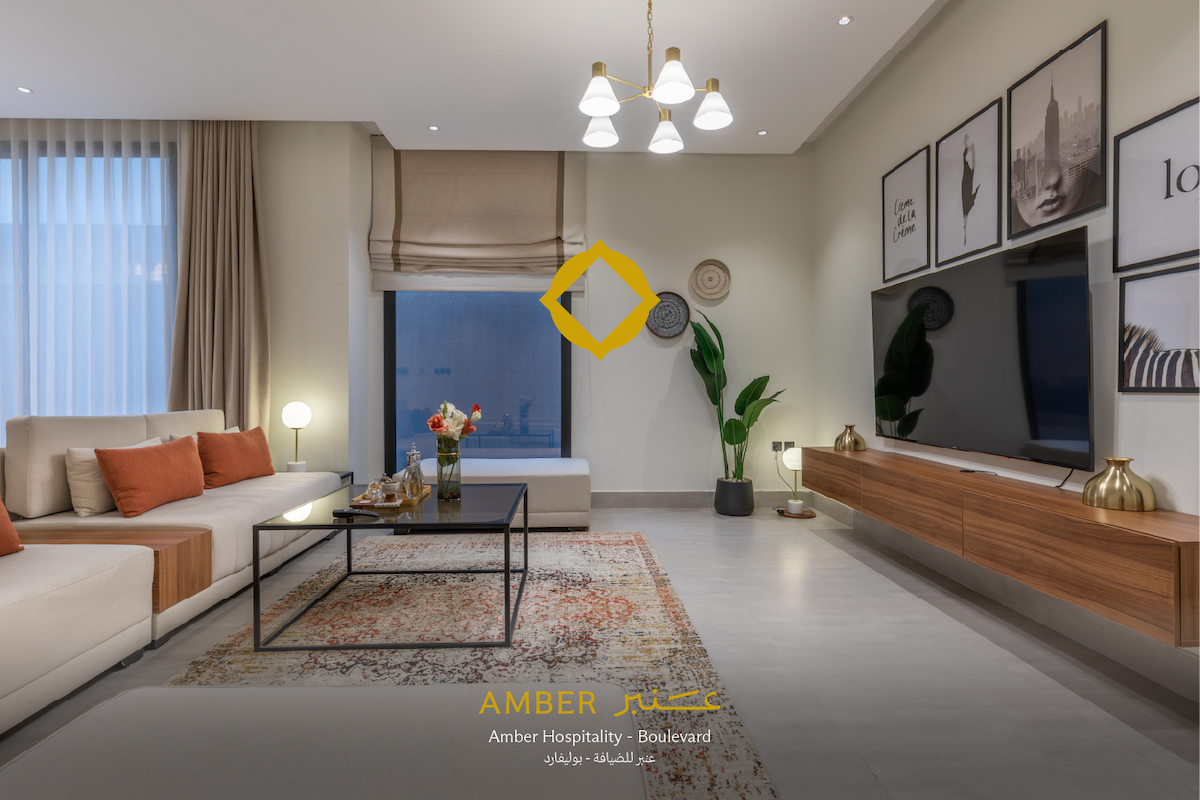 O apartamento foi projetado com um design moderno e é caracterizado pela tranquilidade e total privacidade e auto check-in. Ele está localizado em uma localização distinta no bairro de Hateen, em frente à Riyadh City Boulevard diretamente e perto dos locais de entretenimento e teatros para a temporada de Riade, o que facilita a movimentação durante a temporada e também perto de todos os serviços e complexos. O apartamento tem internet e há uma tela inteligente com assinatura Netflix e relógio VIP gratuito.