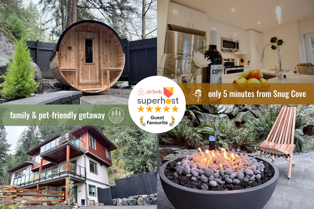 Somos Superhosts e uma acomodação residencial totalmente licenciada em Bowen Island. Sua escapada tranquila na ilha espera por você no The Barnfield Suites, uma suíte privativa de 2 quartos no térreo, a apenas 4 minutos de Snug Cove. Os hóspedes desfrutam de acesso exclusivo ao Cedarwood, nosso circuito privado de terapia de contraste de bem-estar e auto-guiado da Ilha Bowen, com sauna de cedro, mergulho frio, chuveiro ao ar livre, lareira, área de descanso e rede para relaxamento tranquilo. Licença municipal nº 00000672 Registro BC PM907577400