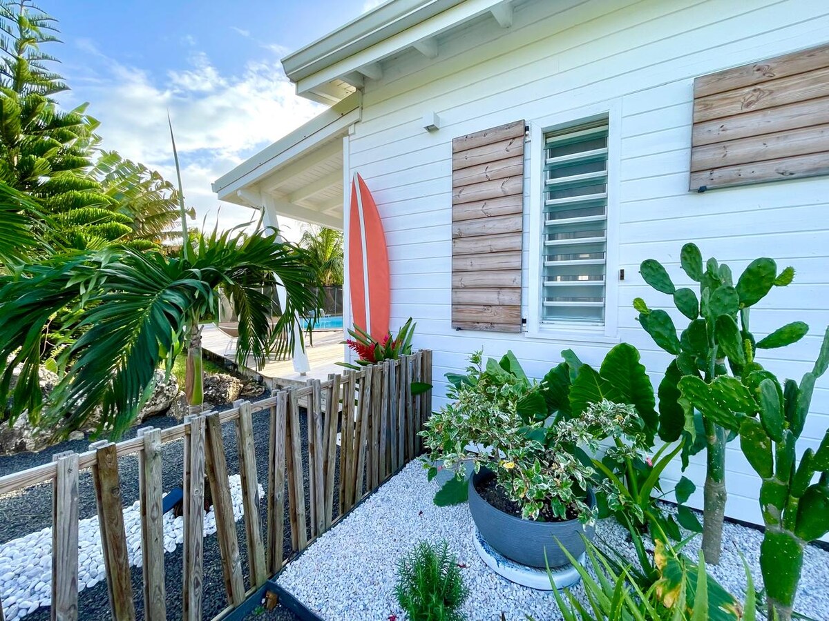 Uma vila com charme boêmio, aninhada entre praias e campos, em Sainte-Anne, e a 10 minutos de Saint-François e Le Moule. Quatro quartos iluminados e climatizados, dois banheiros, uma piscina privativa cercada por palmeiras, terraço sombreado para o final do dia. Um tanque em caso de falta de água e um estacionamento privativo. Materiais naturais, luz suave, espírito tropical. Um local perfeito para relaxar e se reunir.