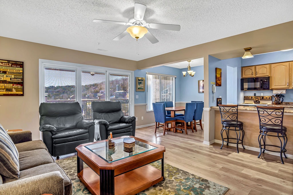 Enjoy the comforts of home in this stylish one bedroom condo with newly updated kitchen! It is perfectly located in the seclusion of 300 wooded acres, only one mile from Silver Dollar City. All your favorite Branson attractions are just a short drive away! Enjoy a stroll on our private walking trails leading to a 5-acre lake or take advantage of the seasonal pool, playground and b-ball court. If the dates you are looking for aren't available, request a link to our sister property The Aviary.