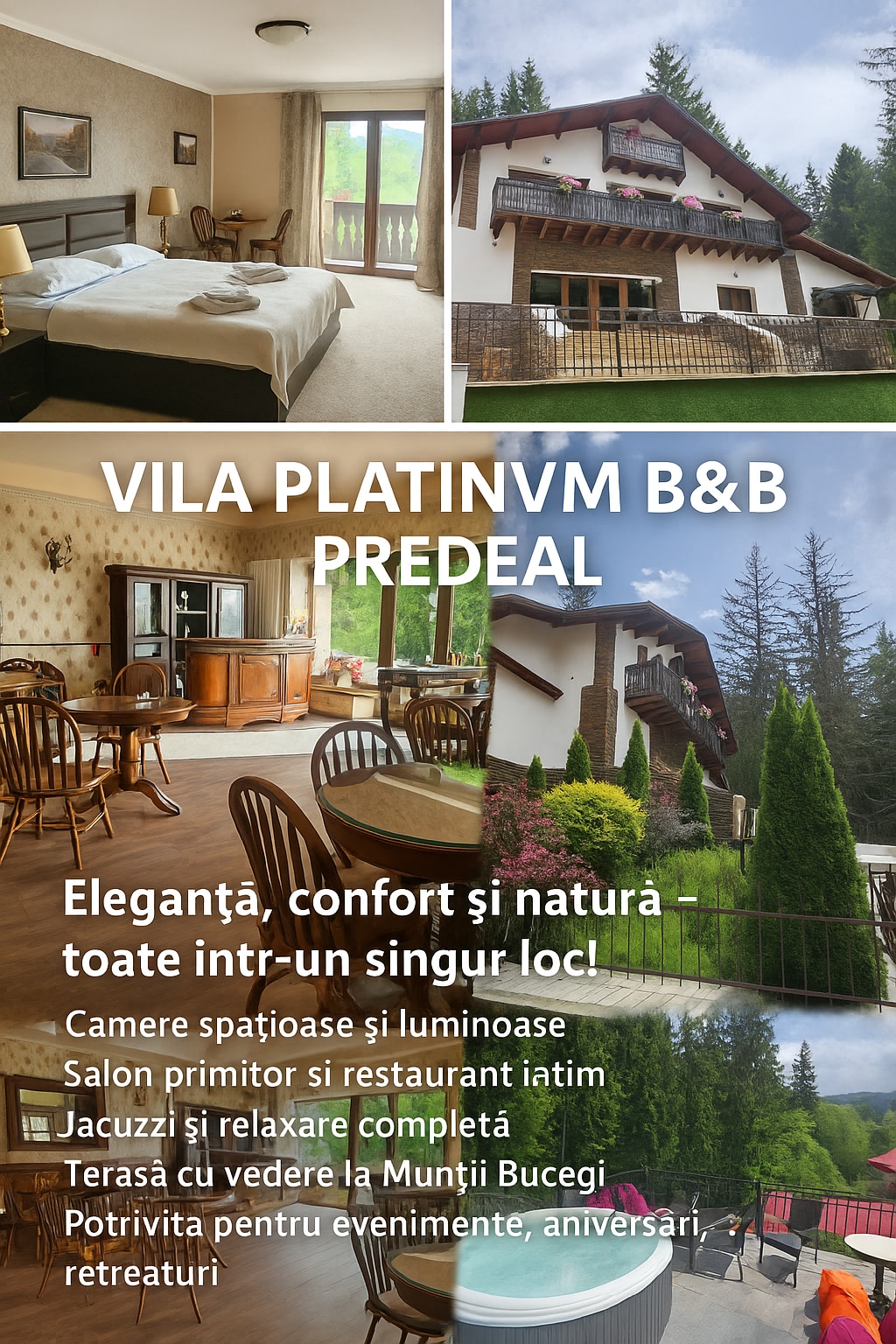 Relaxamento na montanha, perto da pista de esqui, com jacuzzi e sauna Bem-vindos à Villa Platinvm B&B, onde a tranquilidade da serra se combina perfeitamente com o conforto moderno. Localizada em Predeal, a poucos minutos da pista de esqui Clăbucet, a localização é ideal tanto para entusiastas de esqui quanto para quem busca um fim de semana relaxante com ar puro e vistas espetaculares das Montanhas Bucegi. Depois de um dia de atividades, você pode relaxar na banheira de hidromassagem interna ou na sauna — a maneira perfeita de recarregar as energias.