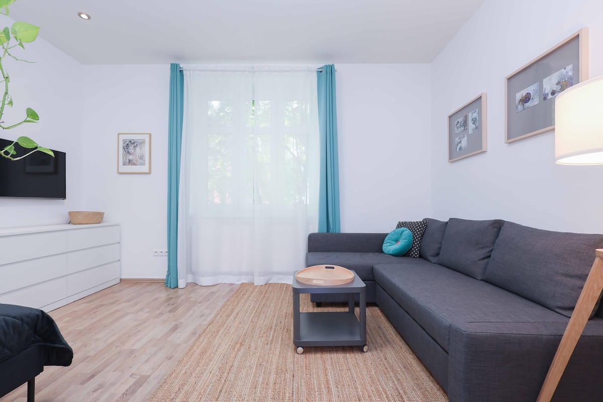 Curta uma experiência elegante neste lugar bem-localizado, adequado para viagens mais curtas, bem como para viagens de negócios mais longas. O apartamento dispõe de uma cozinha totalmente equipada, uma cama tamanho queen, um sofá e uma varanda com uma bela vista para o tranquilo bloco interno deste edifício residencial recém-construído. O apartamento não tem uma vaga de estacionamento disponível, mas você pode facilmente se locomover pela cidade a pé, de bicicletas compartilhadas ou transporte público, pois há paradas de ônibus e bonde perto do apartamento.