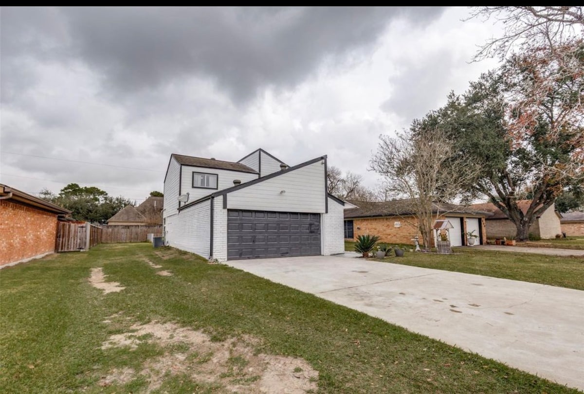 Se você estiver viajando sozinho, como casal ou até mesmo como família, nossa tranquila casa de hóspedes está pronta para sua estadia. A casa, localizada no quintal da nossa residência principal, tem aproximadamente 600 pés quadrados com um quarto, sala de estar e uma cozinha completa com uma pequena geladeira. A área é totalmente cercada para privacidade, juntamente com um pátio e móveis. Estamos a menos de 10 minutos da SH 288, a 45 minutos das praias, a 30 minutos do Texas Medical Center, a 15 minutos do Pearland Town Center, a 20 minutos do SkyDive Spaceland.