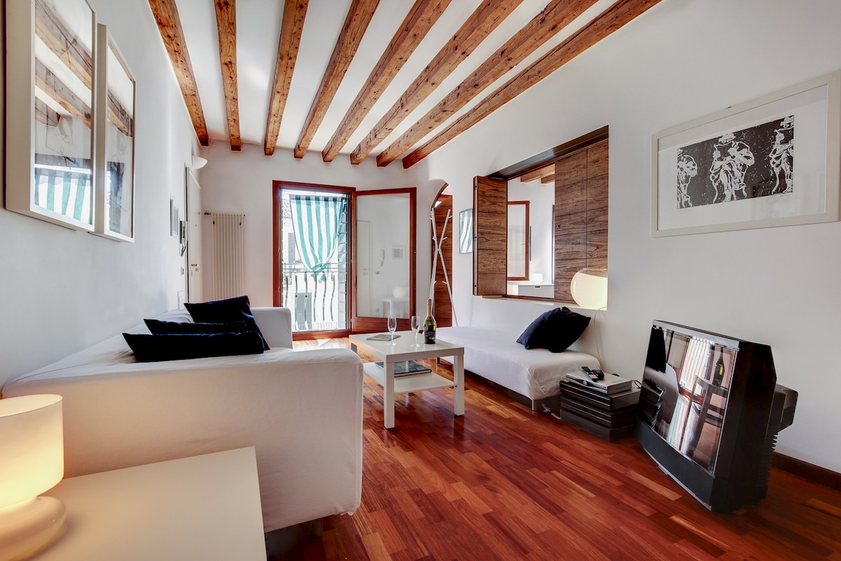 Apartamento elegante e moderno no centro histórico de Veneza, no Sestiere San Polo, a poucos passos da Basílica dei Frari, uma das áreas mais características de Veneza, repleta de "bacari" e pequenos bares. Com vista direta para um importante canal que permite a chegada dos hóspedes diretamente de táxi. Excelente oportunidade para viver uma Veneza tradicional como um verdadeiro veneziano.