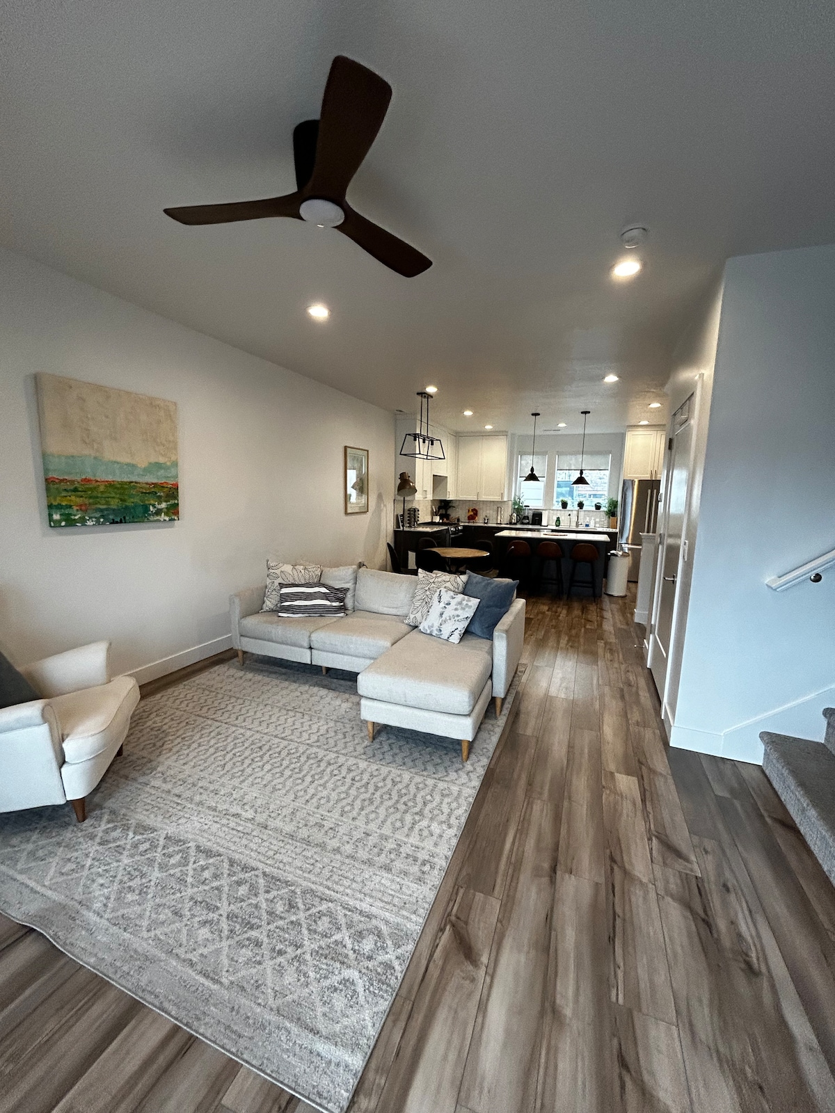 Desfrute de vistas deslumbrantes de todas as janelas em nossa casa de 4 andares no coração do centro de Provo. Trabalhe no escritório em casa (Wi-Fi rápido), desfrute de uma refeição no terraço e aconchegue-se perto da lareira para um filme em nossa TV 4K HD de 65 polegadas. Temos uma cadeira alta, Snoo (berço inteligente), pack n play e jogos/brinquedos para crianças. Fica perto de BYU, Sundance e vários centros de eventos. Temos também uma mercearia Smith's do outro lado da rua.