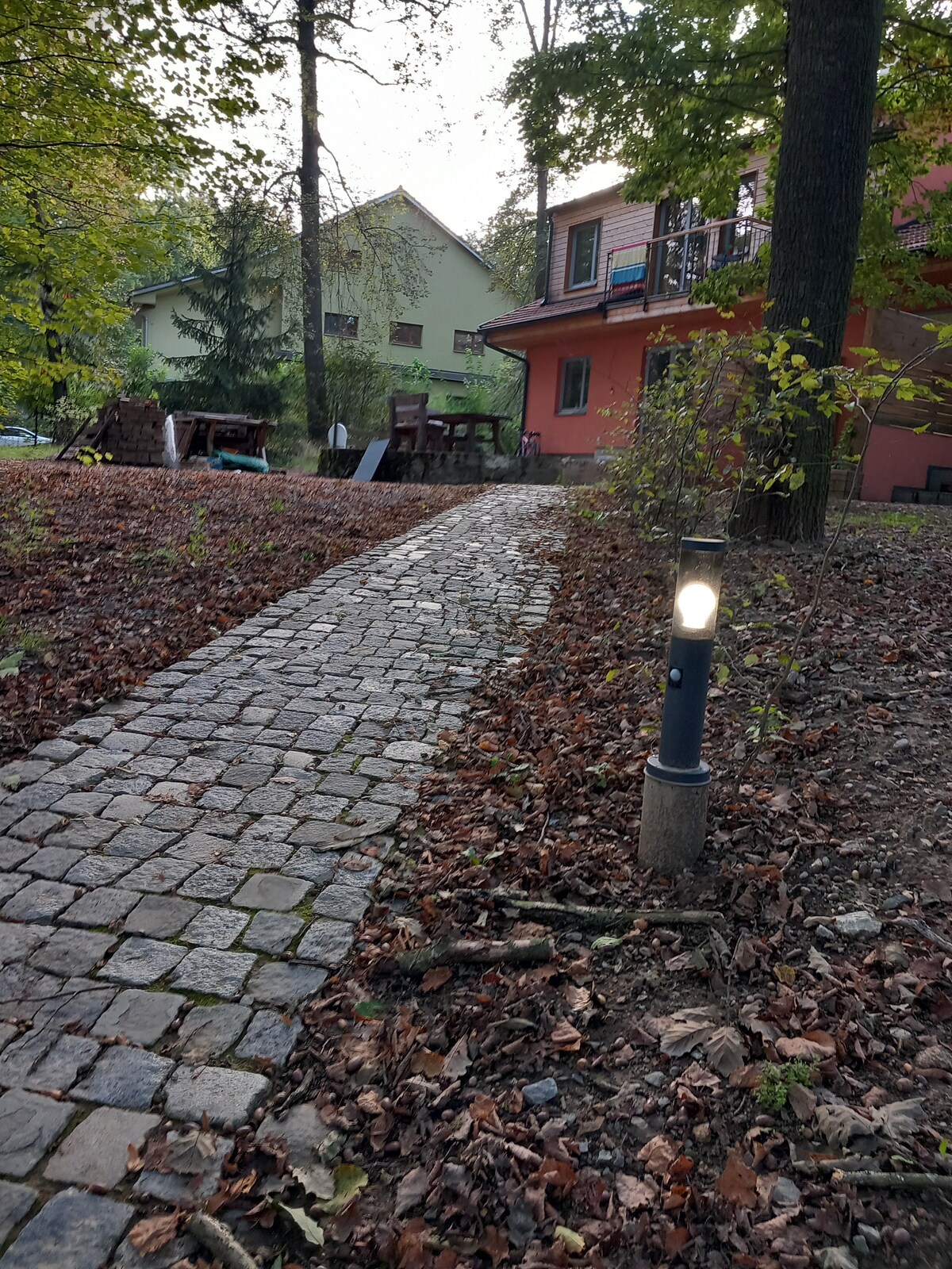 A casa de campo está escondida na floresta, não está na trilha principal de caminhadas, e está no final da estrada, você desfrutará de completa paz dos carros. No verão, 3 graus mais frio do que no centro ou perto da água. O lote é um grande terreno de 1000 m², o que garante privacidade dos transeuntes. A vantagem é um terraço espaçoso coberto em caso de mau tempo, você ainda pode passar um tempo ao ar livre. A casa de campo remonta aos anos 30, quando dois amigos a compraram como uma casa geminada. A parte inferior da casa de campo é de tijolos, a parte superior é de madeira.