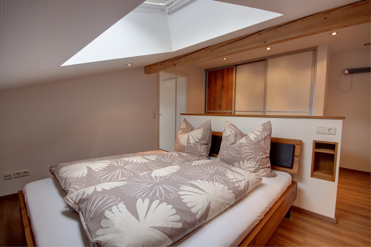 Genießen Sie schöne Tage im Kaiserhaus mit Garten & wunderbarem Blick auf die Berge. Ein 200 Jahre altes Holzhaus wurde hier in der Nähe abgetragen und neben meinen Haus wieder aufgebaut. Das neue (alte) Holzhaus wurde sehr ökologisch und auf neuestem Stand wieder hergerichtet. Dieses Studio wurde fast nur mit altem & neuem Holz ausgekleidet - man sieht noch die alte Handwerkskunst. Dennoch ist auch das Moderne wie Beamer, Alexa Sprachsteuerung eingebaut. Parkplätze stehen zur Verfügung.