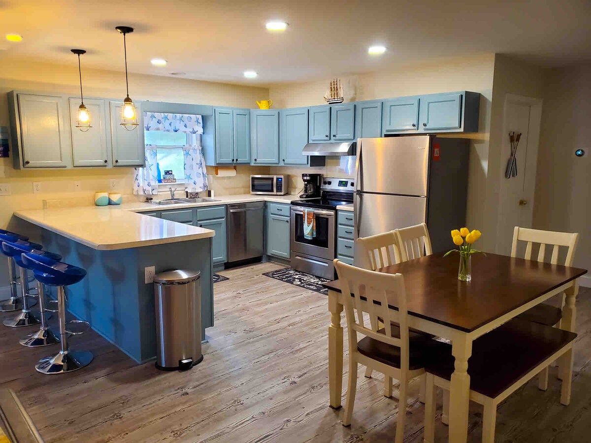Adorável casa em frente ao canal! Como se isso não fosse especial o suficiente, você pode caminhar até o píer, restaurantes, bar de vinhos, bar com entretenimento e comida, áreas de aluguel para bicicletas e caiaques, putt putt, concertos de verão e o museu!! O piso inferior possui uma sala de jogos com mesa de bilhar. Há um banheiro e quarto, juntamente com uma área de estar neste andar, bem como um sofá-cama para espaço extra para dormir. O andar principal possui quatro quartos, 2 banheiros e meio e uma despensa. Grande área de cozinha.