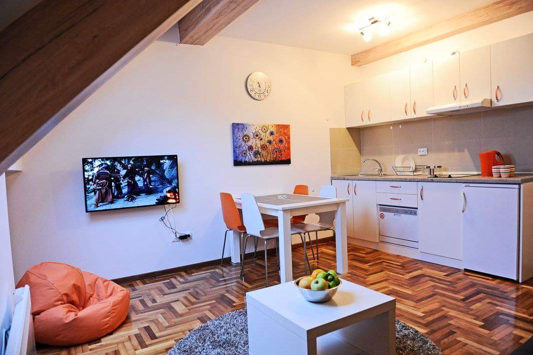 Apartamento LOFT ACONCHEGANTE é um lugar com sala de estar/jantar/cozinha, quarto separado e banheiro privativo - perfeito para as suas férias de esqui de inverno ou caminhadas e estadias relaxantes durante todo o ano. Este espaçoso apartamento de 33 m2 está localizado dentro do complexo hoteleiro Kraljevi Cardaci Spa, na área do resort de Kopaonik. Todos os serviços e comodidades do hotel estão à disposição dos hóspedes (por taxa adicional paga diretamente no hotel) - spa e piscinas, centro aquático para crianças, academia, buffet de café da manhã/jantar, sala de jogos para crianças, serviço de quarto, etc.