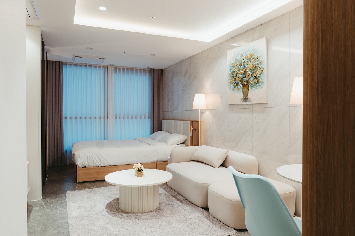 Localizado no centro de Seul, é um espaço que possui conveniência de localização e estilo elegante. É um hotel de residência de alta qualidade construído no segundo semestre de 2023. Máquina de lavar e secar roupa, cama queen size e sofá-cama, utensílios de cozinha de alto nível estão instalados, e um filtro de água e uma cafeteira estão disponíveis. O espaço é amplo e o interior é luxuoso, para que você possa aproveitar o melhor descanso. Faremos o nosso melhor para garantir que você tenha uma estadia confortável durante a sua estadia.