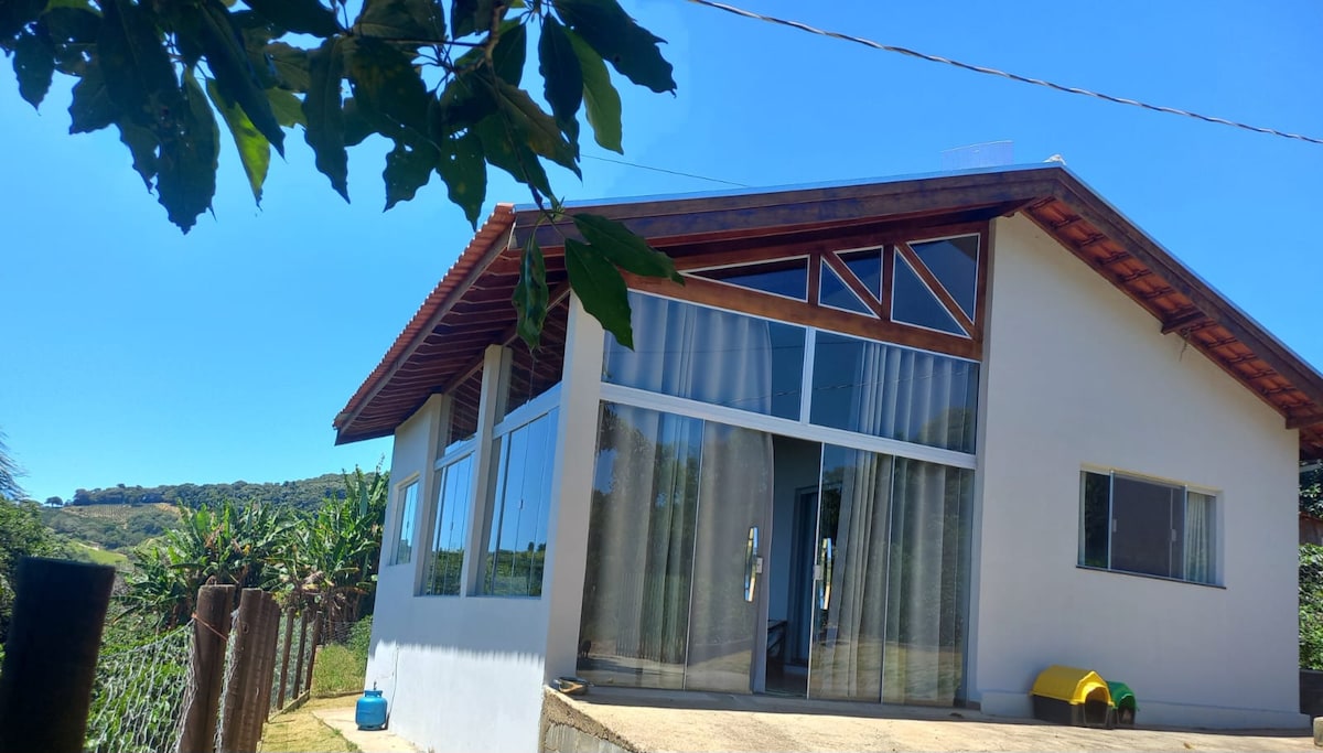 Casa localizada a 4 km do Centro da cidade de Bueno Brandão-MG, com cachoeira a 200m (dentro propriedade). Casa nova, recém construída com um visual incrível, onde é possível dormir ao som da cachoeira. A natureza ao redor da casa é uma verdadeira obra de arte! Excelente para relaxar, apreciar um bom vinho ou ler um livro.