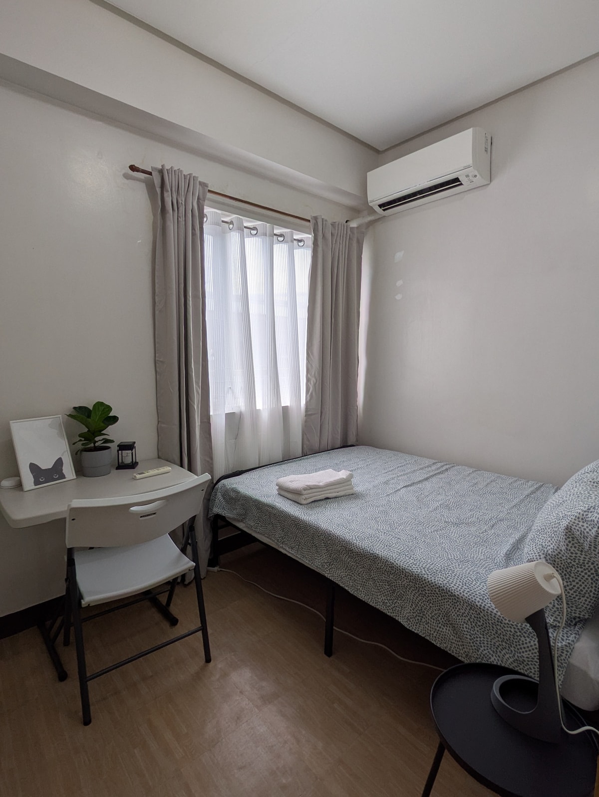 Uma unidade de estúdio aconchegante e confortável localizada no coração do SMDC Cheer Residences em Marilao, Bulacan! Nossa unidade está totalmente mobiliada e equipada com tudo o que você precisa para uma estadia confortável e agradável, incluindo uma cama queen-size confortável, um sofá-cama, uma TV de tela plana, uma mesa de jantar, uma cozinha acoplada com uma geladeira, micro-ondas, chaleira elétrica e utensílios de cozinha básicos, um banheiro privativo com um chuveiro quente e frio, piscina, segurança 24 horas e recepção.