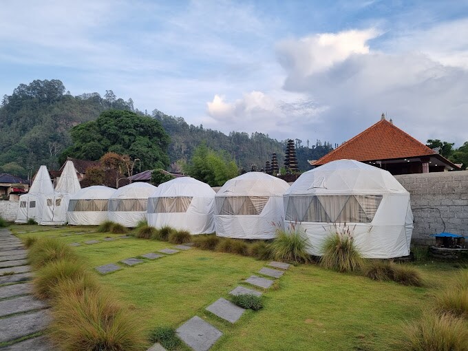 Localizado na costa do Lago Batur na aldeia de Songan Kintamani, Bangli Bali, que tem um estilo diferente e forma especial e espaço com outras propriedades. O acampamento que apresenta uma bela vista para a montanha, vista para o lago e para o nascer do sol e vai estragar os olhos de manhã e à noite você pode ver a vista da tenda com uma combinação de luzes que é muito bonita e encantadora. Cada tenda tem no máximo 2 pessoas com banheiro compartilhado com outros hóspedes.