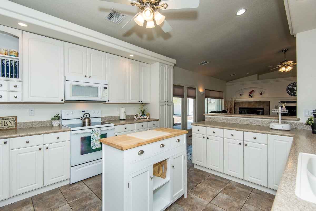Bem-vindo ao nosso Oásis do Deserto. Temos o lugar perfeito para você!! Desfrute de um dia no lago, uma tarde em um Razor ou uma noite no cassino, nossa casa é o local para desfrutar da beleza do deserto do Arizona. Desfrute da Netflix na TV de 80 polegadas ou relaxe na piscina de vôlei (3,5 lados/5 pés no meio). Churrasco e jantar sob pátio coberto. Bairro amigável. Horário de silêncio: 22h-7h. Estacionamento na garagem e na rua (sem acesso à garagem) estacionamento lateral para Razors. Proibido animais de estimação, PROIBIDO FUMAR! ABSOLUTAMENTE PROIBIDO FOGOS DE ARTIFÍCIO!!