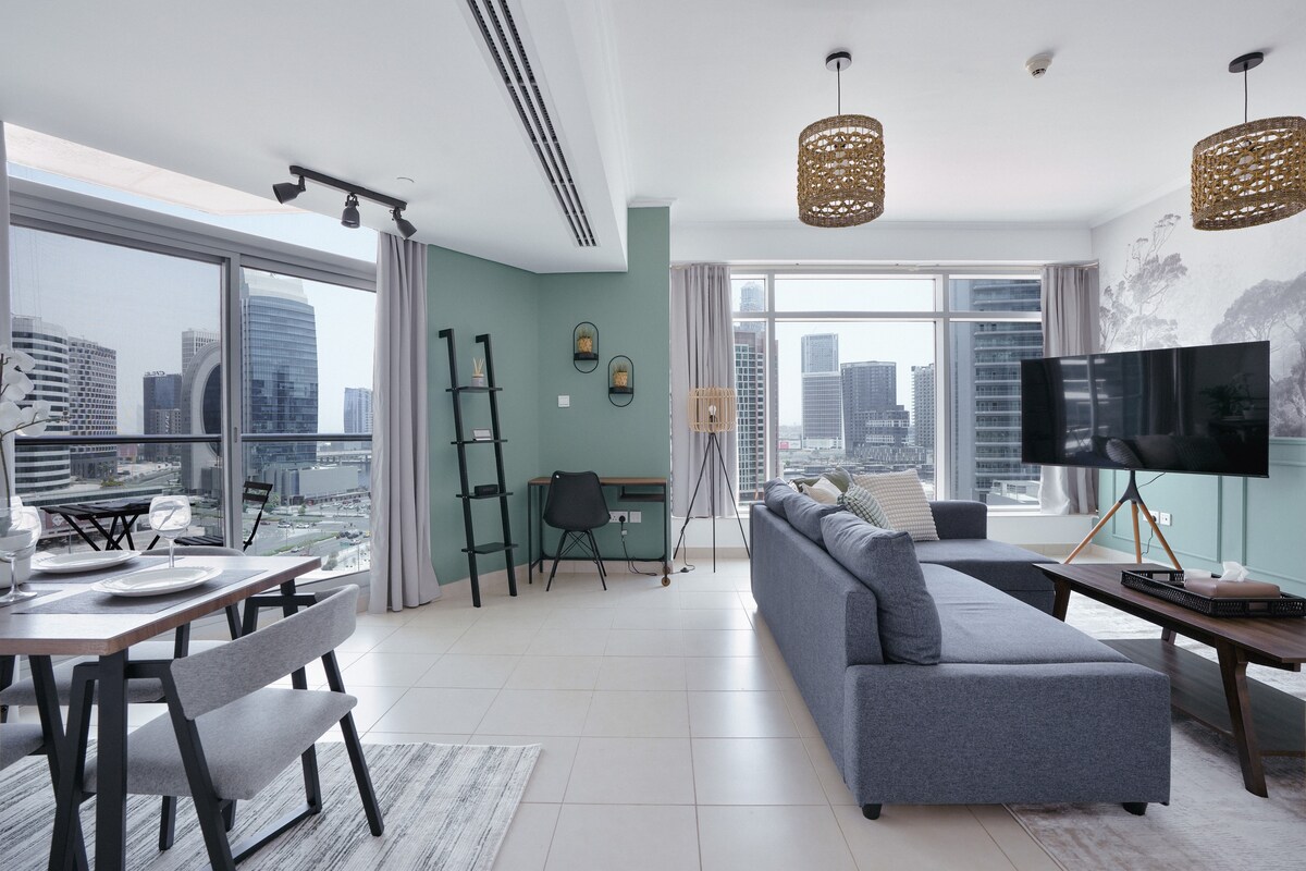 "Gostei muito da minha estadia aqui; o apartamento parecia em casa, limpo e com móveis de luxo personalizados. A cama era super confortável e adorei o design elevado." - Jay, um hóspede anterior. Este espaçoso apartamento de um quarto fica no coração do centro de Dubai, com vista parcial para o Burj Khalifa e a Fonte. Fica a apenas 10 minutos a pé do Dubai Mall e do Burj Khalifa. Perfeito para casais, viajantes individuais ou hóspedes de negócios. OBSERVAÇÃO: esta propriedade não tem estacionamento designado.