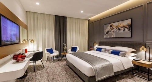✨ Round Bed Deluxe Suite – Dubai’s Most Romantic Escape! Sleep in luxury on a plush king round bed with dreamy lighting & chic decor. Perfect for couples, this stylish suite features a rain shower, smart TV, and premium linens. Enjoy a cozy, intimate vibe with stunning city views. Close to top attractions—book your unforgettable stay! 💖