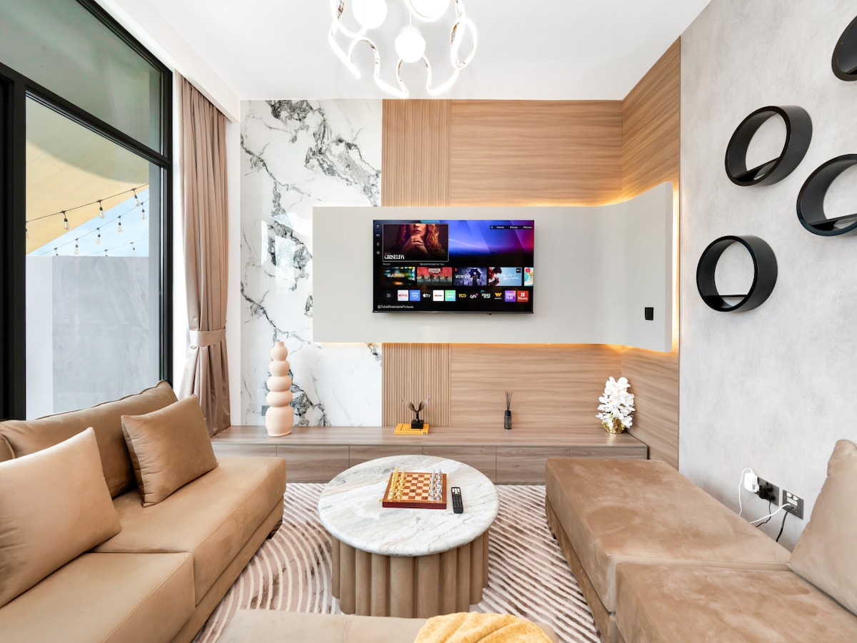 Entre em um mundo onde tons terrosos e quentes encontram o luxo moderno e refinado. Esta residência rústica-real, com tema marrom, de 2 quartos, no prestigiado Signature Grande Residences, oferece uma estadia única e íntima em Dubai. Selecionada para viajantes que apreciam design com alma e conforto de alta qualidade, esta acomodação se destaca como um refúgio sereno e visualmente expressivo. Gostaria de ser levado do aeroporto? Nós cuidamos de você: aproveite a partida e a chegada sem preocupações em um BMW Série 7, incluído na sua estadia.