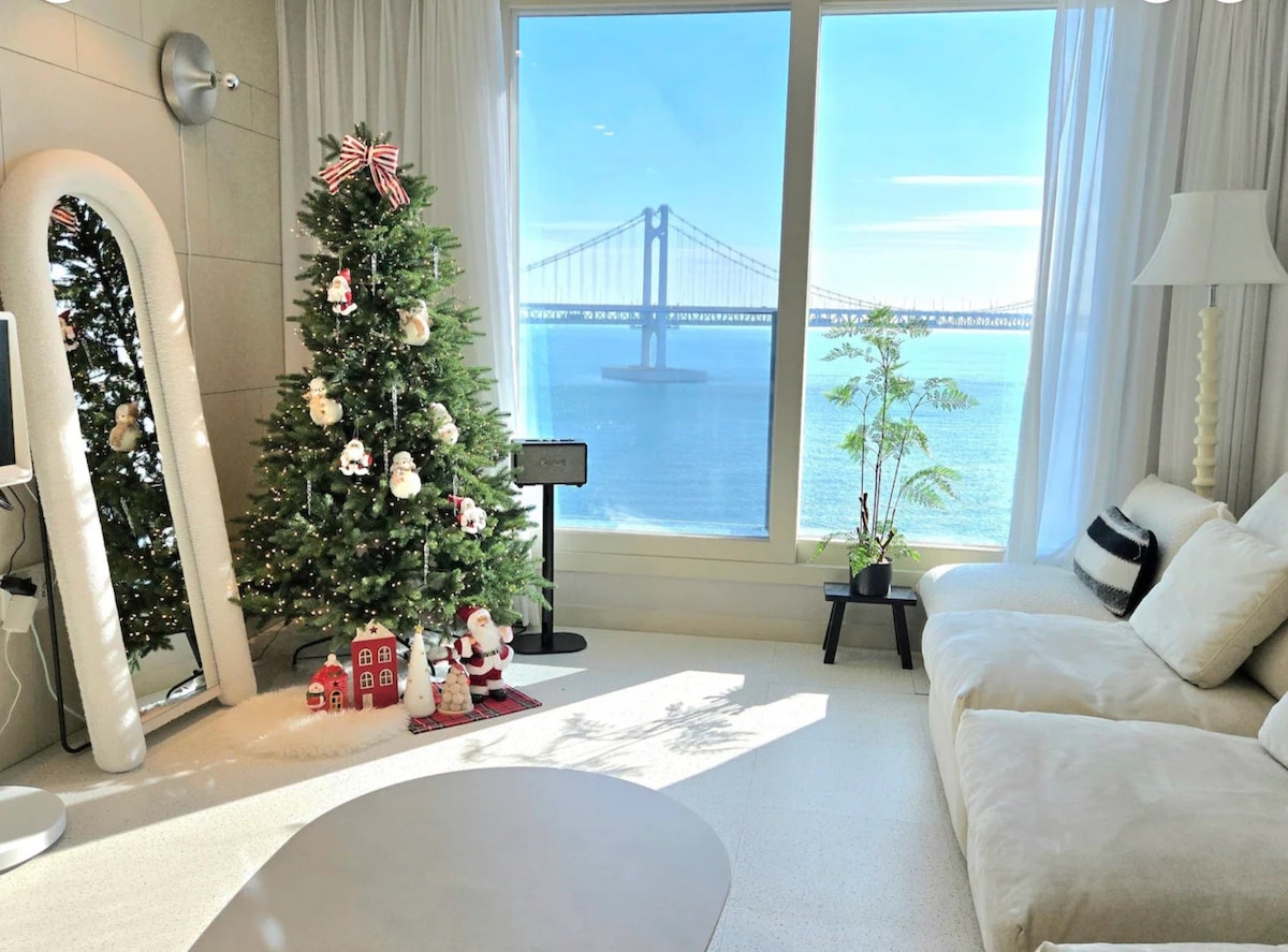 Instalação de árvores, vista para o mar da ponte Gwangan, vista para a cidade de Haeundae, 3 quartos [2 quartos + sala de estar] Healing, restaurante com vista, praia, mercado de Milac