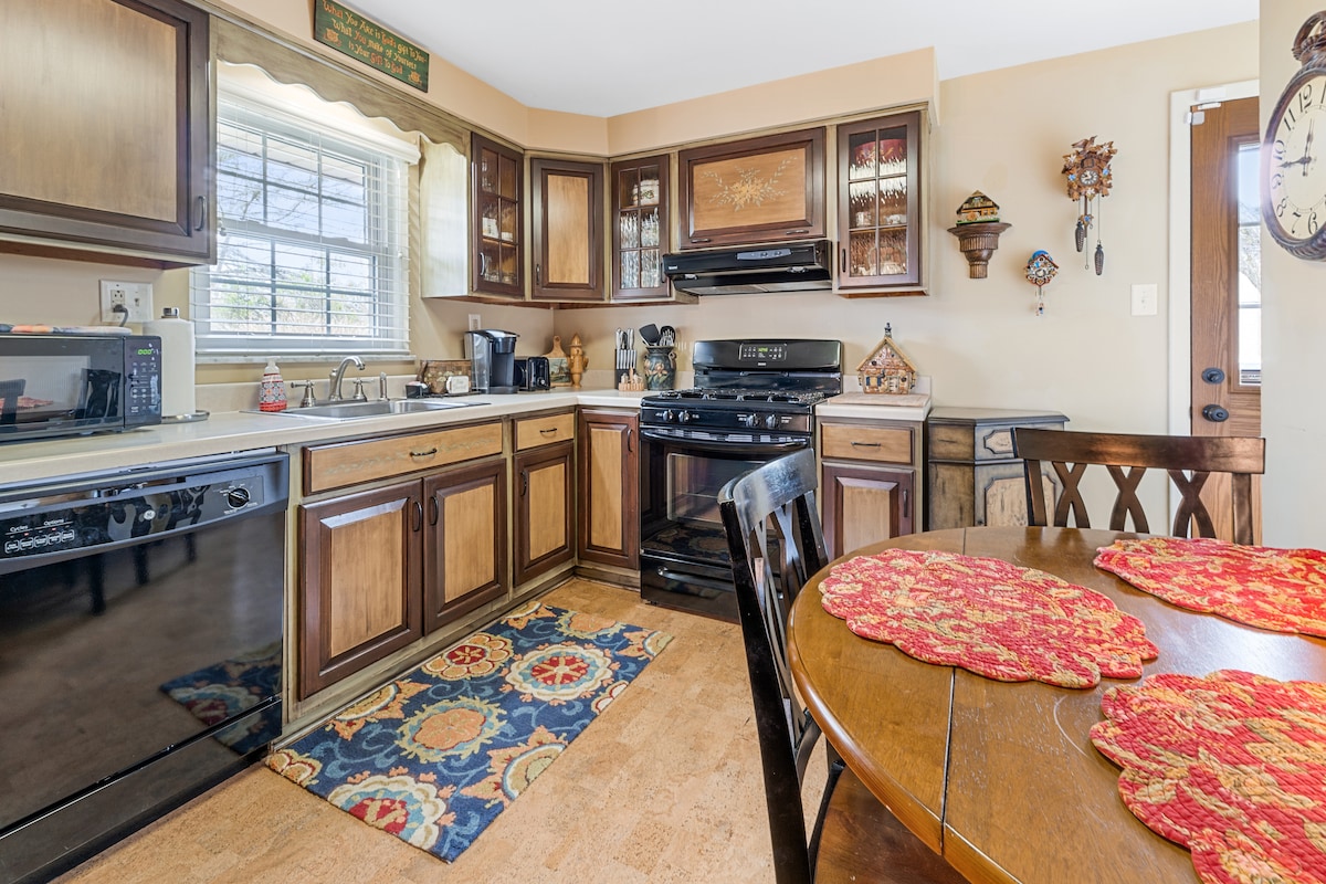 Esta casa geminada recentemente remodelada é uma casa bonita e confortável para sua visita a Grove City! A uma curta distância da Grove City College e do centro da cidade de Grove, a casa tem internet de alta velocidade, duas TVs inteligentes LG de 43 polegadas e cozinha e banheiros bem abastecidos. A casa tem sofás e poltrona reclinável La-Z-Boy novos, bem como camas e colchões novos. Móveis de madeira antigos e obras de arte adicionam calor e caráter à decoração.