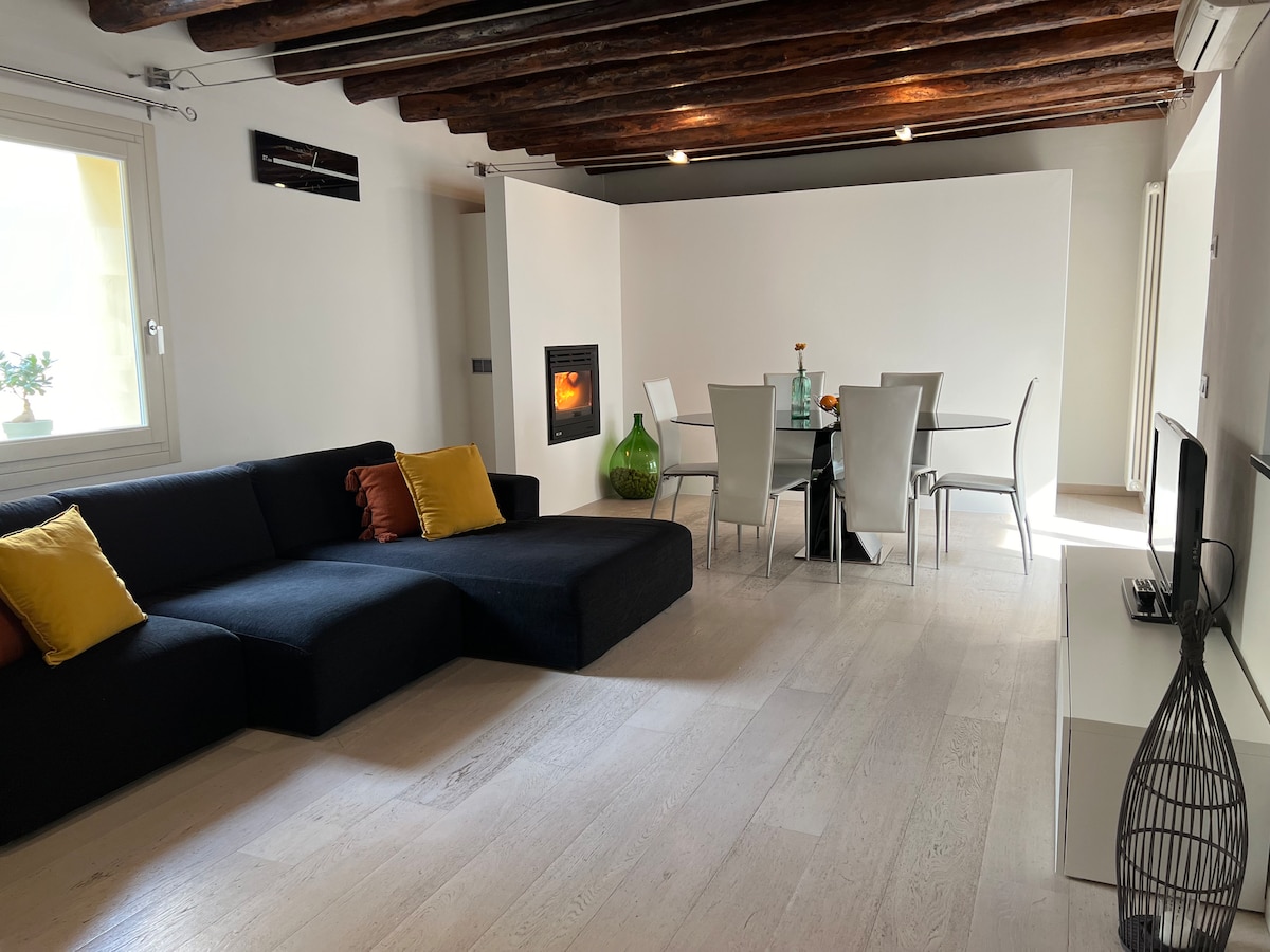 Um apartamento inteiro com uma decoração de estilo veneziano, em um palácio privado de 1600, com uma VISTA DESLUMBRANTE. Situado no 1º andar, o apartamento tem um quarto grande com uma cama queen size. O banheiro é espaçoso e equipado com um grande chuveiro. A cozinha está totalmente equipada com uma geladeira, torradeira, chaleira e uma máquina Nespresso. A entrada se abre para uma área de estar muito grande com vista para o canal, onde você pode sentar e basicamente tocar a água enquanto desfruta de uma taça de vinho.