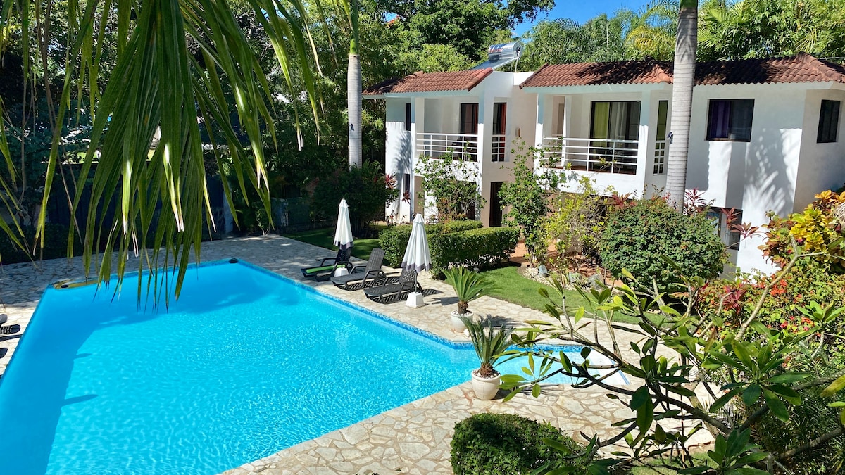 Este apartamento recém-pintado está localizado no centro da cidade de Sosua.Possui todas as utilidades que você pode precisar, incluindo máquina de lavar roupa, cafeteira,torradeira e micro-ondas. A unidade do 3º andar tem uma bela vista da fantástica piscina de sua própria grande varanda com telas de vidro e mosquito.Caminhada curta até a praia, compras, vida noturna, bancos literalmente tudo a uma curta distância, TV de tela plana grande com sistema de som surround, WIFI grátis, colchão KING size grande.